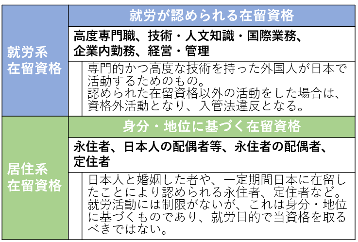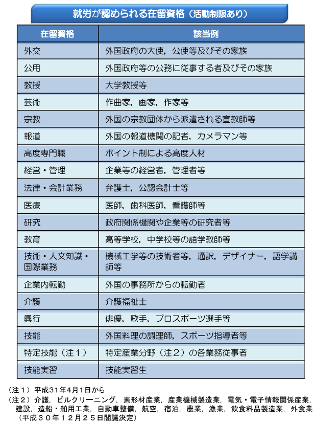 出入国在留管理庁「在留資格一覧表」より