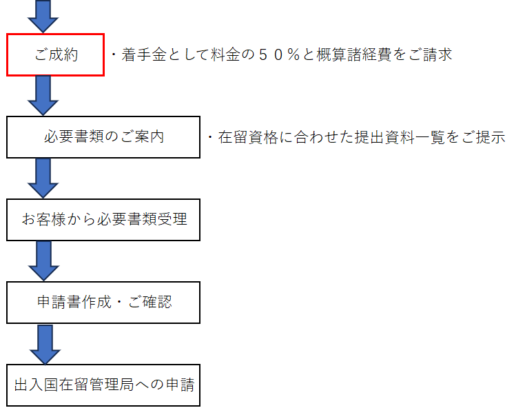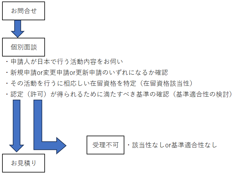 お問合せを受けてから申請までの流れについては、以下のとおりです。